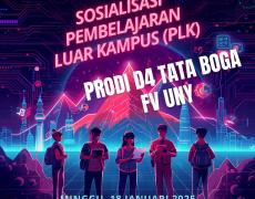 Kulon Progo, 9 November 2025 – Dalam rangka memenuhi tugas proyek yang berkaitan dengan Sustainable Development Goals (SDGs), mahasiswa Program Studi Sarjana Terapan Tata Boga Universitas Negeri Yogyakarta (UNY) menyelenggarakan kegiatan Workshop “From Shroom To Boom” pada Minggu, 9 November 2025, bertempat di Ruang inspirasi, Dormitory UNY...